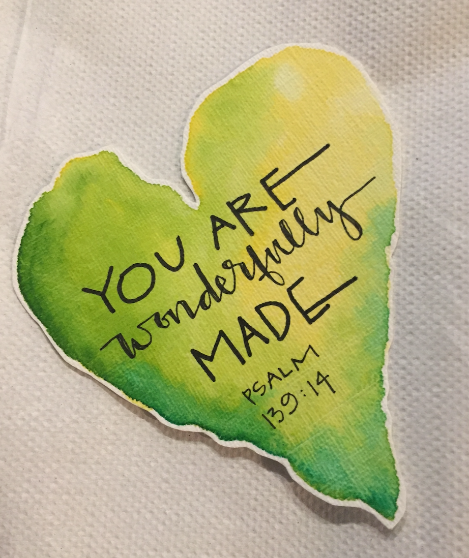 Mallory made a bunch of these watercolor art cut-outs for guests to take years ago. This little heart has reminded me of who I am and how God sees me and all those I encounter on a daily basis