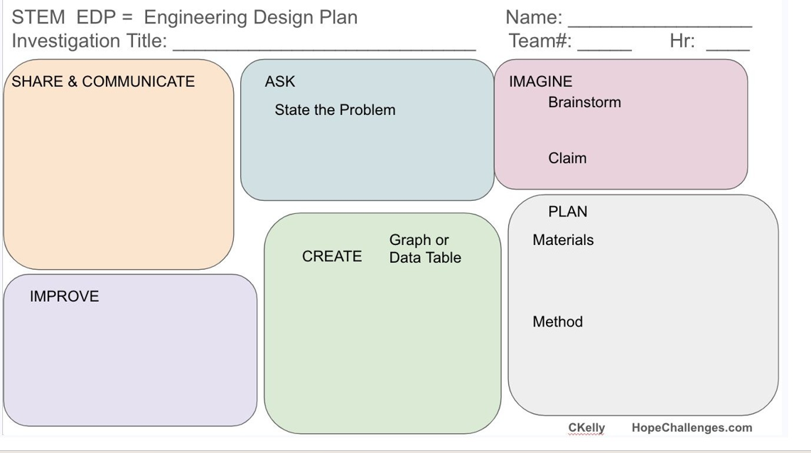 This EDP can be used with any of the STEM activities suggested on Hope Challenges.